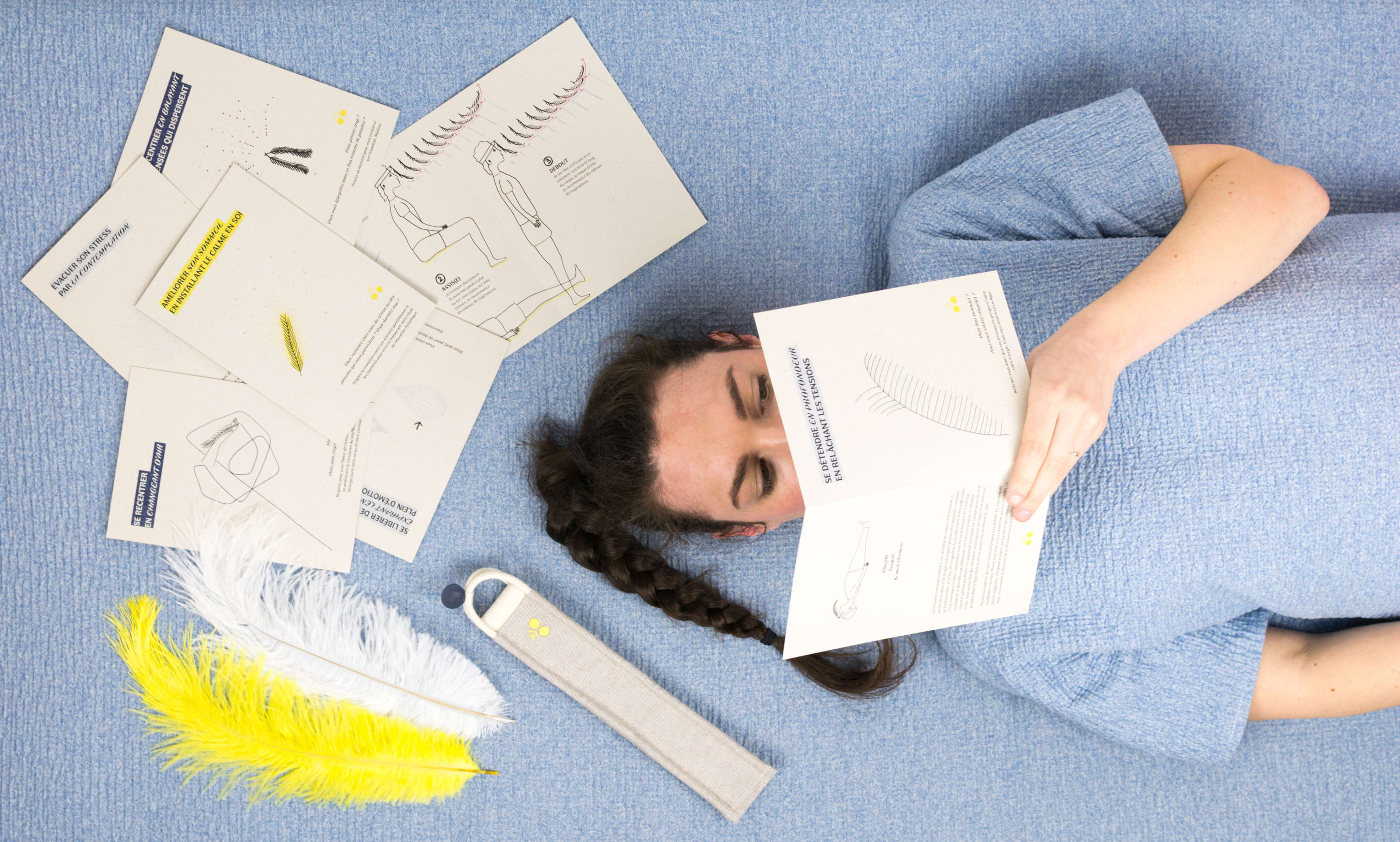 Nos 7 exercices de respiration sont uniquement livrés avec Plume. Nous les avons soigneusement illustrés, puis imprimés sur papier recyclé afin d’inciter votre déconnexion.